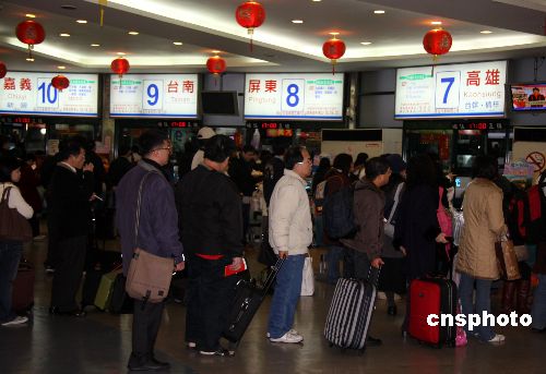 圖:臺(tái)北長(zhǎng)途汽車(chē)客運(yùn)站出現(xiàn)排隊(duì)等車(chē)回鄉(xiāng)人龍