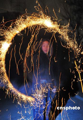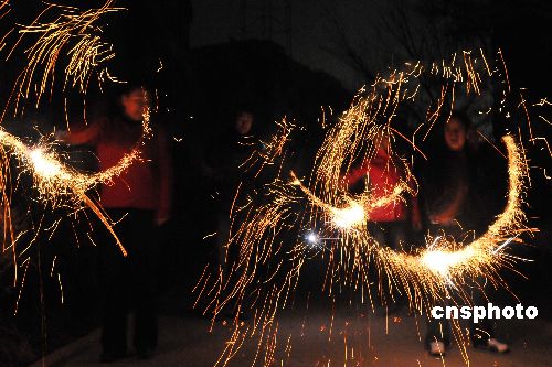 1月25日清晨,在新疆庫(kù)爾勒一家住宅小區(qū),孩子們?cè)谌挤疟夼。?dāng)天是大年三十,一大早,孩子們聚在院子里歡喜迎新。中新社發(fā) 確·胡熱 攝