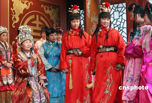 1月27日 (大年初二),北京大觀園十四屆紅樓廟會(huì)吸引眾多假日游客,本屆廟會(huì)以弘揚(yáng)中華傳統(tǒng)文化為宗旨,以展現(xiàn)紅樓文化為主題,呈現(xiàn)出改革開放30年來新北京、新宣武的精神風(fēng)貌。廟會(huì)主要活動(dòng)有“元妃省親”、“寶黛成婚”“賈母賀壽”、紅樓文化展覽--木版年畫展、紅樓夢(mèng)人物火花展以及紅樓美食展示區(qū)等。圖為在紅樓廟會(huì)上由一對(duì)雙胞胎扮演的“賈寶玉”富有戲劇色彩。中新社發(fā) 錢興強(qiáng) 攝