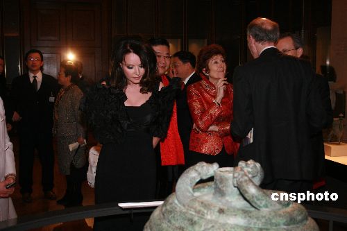 圖為布萊曼在開幕式后參觀在大英博物館舉辦的“中國青銅玉器展”。中新社發(fā) 李鵬 攝