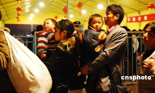 1月30日,江西九江火車站迎來(lái)返程農(nóng)民工客流高峰。據(jù)了解,全天發(fā)送旅客同比增長(zhǎng)31%。中新社發(fā) 胡國(guó)林 攝