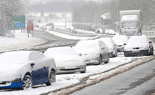 大雪導致公路交通嚴重癱瘓。20年來最大的暴風雪日前襲擊了英國的英格蘭和威爾士等地。