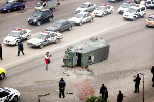 運送傷員時,馮明勇吃驚地看到,運鈔車車內(nèi)有3支槍!
