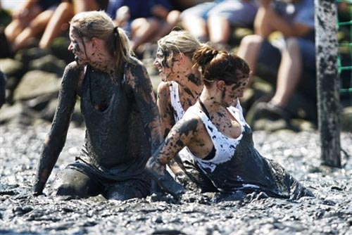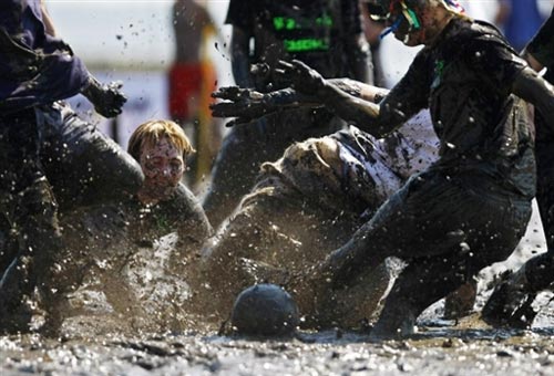 泥地足球:德國北部海邊小鎮(zhèn)Brunsbuettel的泥灘上進行的泥地足球賽。男女“球員”混合在一起,泥地中盡情撒野。