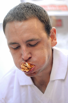 吃披薩大賽:在美國紐約時(shí)代廣場舉行的吃批薩大賽,曾在美國國慶吃熱狗大賽中勇奪冠軍的美國“大胃王”切斯納特(Joey Chestnut)再度出擊,并獲得冠軍。
