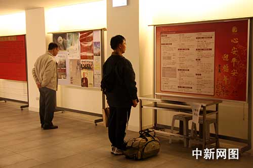 臺灣法鼓山創(chuàng)辦人圣嚴(yán)法師三日圓寂,四日移靈金山法鼓山世界佛教教育園區(qū)大殿供信眾瞻仰,圖為五日晚一名信眾在瞻仰圣嚴(yán)法師法相后,正觀看圣嚴(yán)法師今年春節(jié)的最后祝!靶陌财桨灿D辍薄 中新社記者:陳立宇 攝