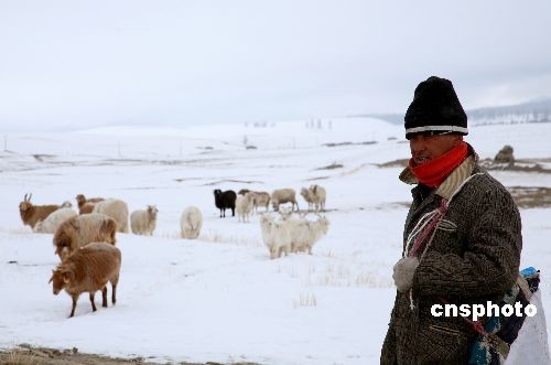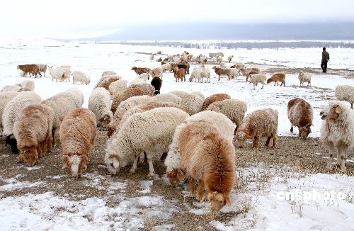 2月5日,受冷空氣影響,新疆哈密北部沿天山一帶降雪,緩解了當?shù)睾登,對草場返青十分有利?br>