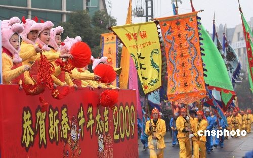 2月9日下午,1000多名農(nóng)民組成的民間舞龍隊在浙江諸暨城里進行踩街鬧元宵活動。當(dāng)日是農(nóng)歷正月十五元宵節(jié),來自諸暨農(nóng)村的布龍隊、板龍隊、調(diào)龍隊等9支舞龍隊進城鬧元宵,吸引了數(shù)萬名市民觀看。中新社發(fā) 袁云 攝
