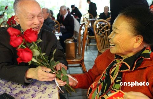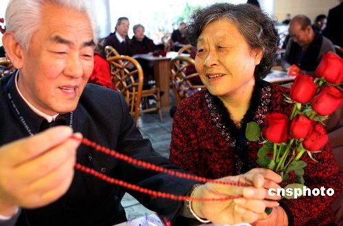 2月9日,中國傳統(tǒng)元宵佳節(jié)到來之際,北京植物園上演的“浪漫玫瑰文化周”吸引99對金婚夫婦共度元宵佳節(jié),特邀而來的金婚夫婦(結(jié)婚滿50年)手捧著政府當(dāng)年頒發(fā)的不同版本的結(jié)婚證,相互獻(xiàn)上象征愛情的紅玫瑰、相思紅豆,交換金婚禮物,重溫愛的誓言,在鮮花前回憶浪漫的美好時光,許多長者回憶起風(fēng)風(fēng)雨雨幾十年的時光,激動得熱淚盈眶。中新社發(fā) 錢興強(qiáng) 攝