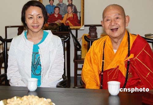 2月9日,著名演藝明星宋丹丹前往三亞度假過元宵節(jié)。一身休閑穿著打扮的宋丹丹游覽三亞南山景區(qū),瞻仰南海觀音,感受三亞美麗風光,歡度休閑假期。圖為宋丹丹在游覽三亞南山景區(qū)時拜訪南山寺方丈、九旬高僧新成大和尚。中新社發(fā) 陳文武 攝