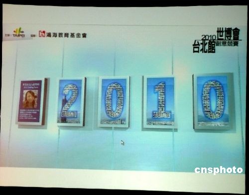 圖為屆時(shí)將現(xiàn)身臺(tái)北館的由臺(tái)北市民的照片組成的2010字樣的“笑臉墻”。中新社發(fā) 路梅 攝