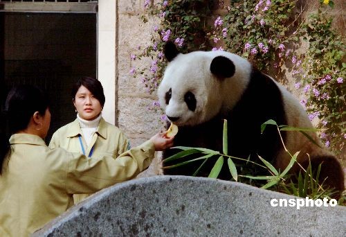 2月11日,生活在福州熊貓世界的28歲(相當(dāng)于人類的100多歲)大熊貓明星巴斯在接受臺灣電視臺攝制組拍攝間隙,盡享明媚春光。當(dāng)日,臺灣電視臺攝制組一行7人專程來到福州熊貓世界,拍攝生活在這里的大熊貓。中新社發(fā) 劉可耕 攝