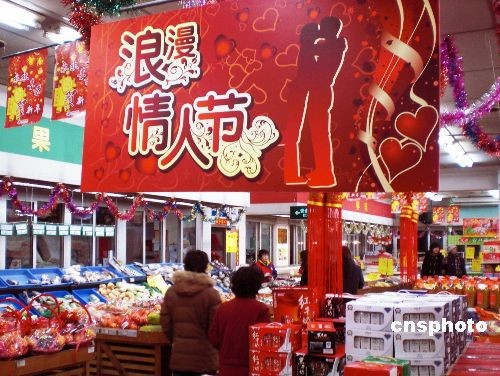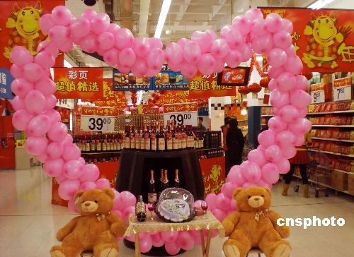 2月11日,情人節(jié)臨近,天津商場(chǎng)節(jié)日氣氛漸濃,各大商家也開始精心布置門面,迎接“情人節(jié)”購(gòu)物季的到來,一場(chǎng)“情人節(jié)”商戰(zhàn)正在悄然打響。中新社發(fā) 金立冬 攝