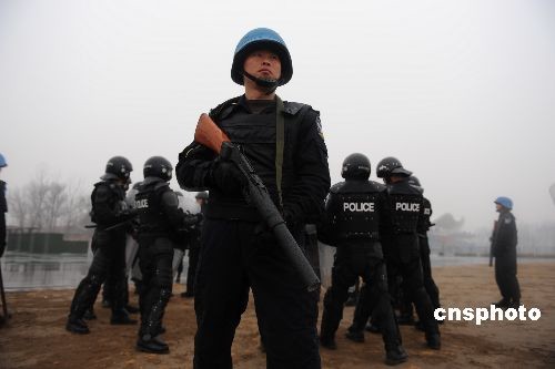 圖:中國赴海地維和警察防暴隊(duì)冒雨訓(xùn)練(5)