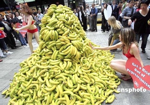 組圖:靚麗女郎街頭派發(fā)香蕉提倡素食文化(3)