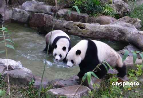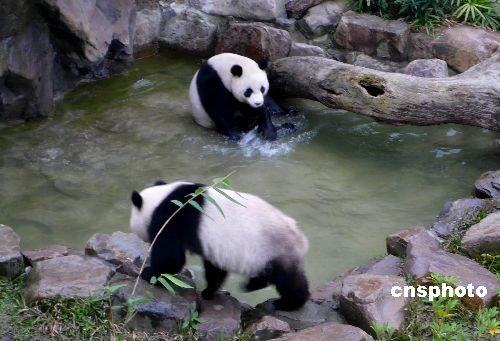 二月十四日,大陸贈臺大熊貓“團團”和“圓圓”首次在臺北新家的戶外展示場與游客見面,再度掀起臺灣民眾的參觀熱潮。當(dāng)天,“團團”“圓圓”到戶外活動的興致極好,常在草地上撒歡奔跑,“團團”樂山,不時爬到山坡的最高點俯視全場; “圓圓”喜水,不時走進水池戲水玩耍。中新社發(fā) 路梅 攝