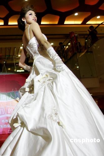 圖:商家緊抓情人節(jié)商機 婚紗展搬進商場(2)