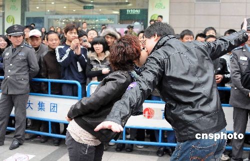 2月14日,杭州市首屆情人節(jié)“牛吻”大賽在武林銀泰、西湖銀泰、杭州百貨大樓三地同時(shí)舉行,活動(dòng)吸引了80對(duì)情侶前來(lái)參加。中新社發(fā) 引煒 攝