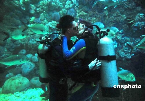 圖:青島情侶水下演繹浪漫情人節(jié)(3)