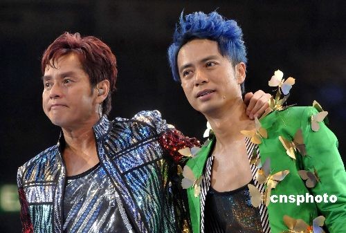 二月十四日晚,“香港二零零九東亞運(yùn)動(dòng)會(huì).左麟右李演唱會(huì)”在香港紅磡體育館作尾場(chǎng)演出。中新社發(fā) 鄧慶樂 攝