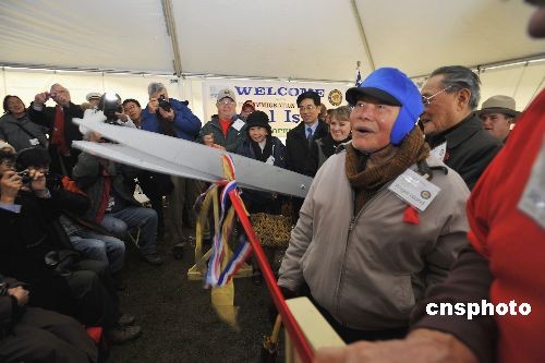 現(xiàn)年93歲廣東移民朱秋樹,1932年曾被羈留于此6個(gè)月,作為歷史見(jiàn)證人參加了剪彩儀式。