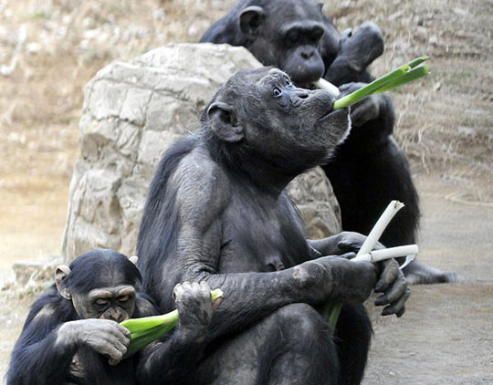 趣圖:動物園里黑猩猩吃大蔥預(yù)防感冒(2)
