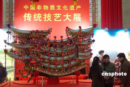 2月17日,在北京舉行的非物質文化遺產傳統(tǒng)技藝大展上,上百位民間手工藝人各展絕活兒,引得人們的爭相觀看,并慷慨解囊購買手工藝品。此次大展共分為9大單元,分別為剪紙繪畫、印刷裝潢、陶冶燒造、雕鐫塑作、五金鏨鍛、制茶釀造、木作編扎、織染紉繡、傳統(tǒng)醫(yī)藥。