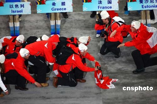 圖為在開(kāi)幕式上瑞典代表團(tuán)以獨(dú)特的方式入場(chǎng)。中新社發(fā) 富田 攝