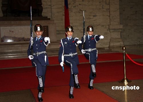2月21日,臺灣“中正紀(jì)念堂”儀仗隊(duì)正在進(jìn)行精彩的表演。自1月24日恢復(fù)儀仗隊(duì)表演以后,紀(jì)念堂內(nèi)游客大增。中新社發(fā) 陳立宇 攝