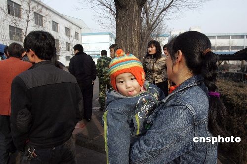 圖為親人生死未卜,年輕的母親焦急萬分,懷中的小孩并不知悲慘的事故已發(fā)生。