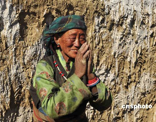 藏歷新年即將到來(lái)之際(2月25日為藏歷大年初一),駐藏空軍部隊(duì)醫(yī)務(wù)人員深入農(nóng)戶義務(wù)巡診。圖為老阿媽一直把官兵們送到大門外,不停地說(shuō):“謝謝親人金珠瑪米(解放軍)。中新社發(fā) 郭超英 攝