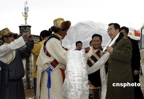 2月25日,中國藏歷年初一,西藏自治區(qū)黨委書記張慶黎冒著風雪來到拉薩市城關區(qū)納金鄉(xiāng)嘎巴村拜年,向村民們祝賀藏歷新年,并走村入戶與村民們一起過年。中新社發(fā) 廖攀 攝