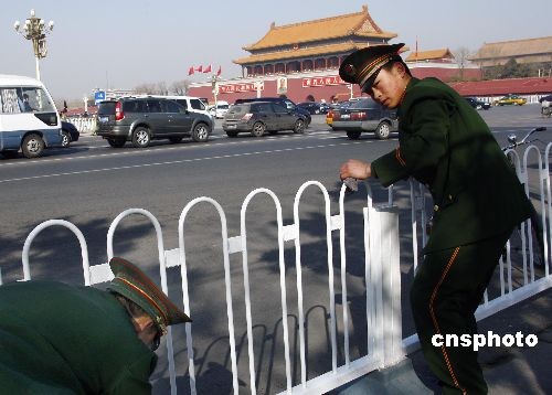 2月27日,全國“兩會”即將召開,北京天安門廣場進行全面清潔整理工作,以迎接“兩會”開幕。中新社發(fā) 鄭雄增 攝