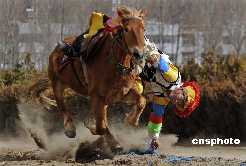 2月27日,中國(guó)藏歷年初三,拉薩賽馬場(chǎng),傳統(tǒng)賽馬與表演活動(dòng)舉行,騎馬拾哈達(dá)等項(xiàng)目表演得精彩絕倫。
