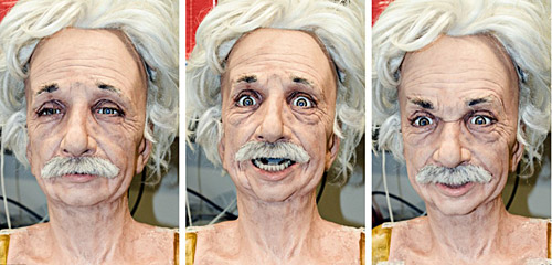 中新網(wǎng)2月28日電 據(jù)英國媒體報道,美國科學(xué)家研制出了一款面部表情可以改變的機器人,定名為“愛因斯坦”。該型機器人須發(fā)皆白,臉上汗毛根根逼真。它雖然只有頭部和肩膀,卻能根據(jù)人類喜怒哀樂做出相應(yīng)面部表情?茖W(xué)家希望它能催生“多情”智能機器人,增進人機甚至人人交流,避免電影《黑客帝國》中人機大戰(zhàn)場景成真。