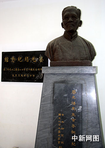 圖為臺北“中央研究院”蔡元培紀(jì)念館中的蔡元培塑像,由“中研院”原北京大學(xué)同學(xué)會敬立。蔡元培曾任北京大學(xué)校長、“中研院”院長。陳立宇 攝