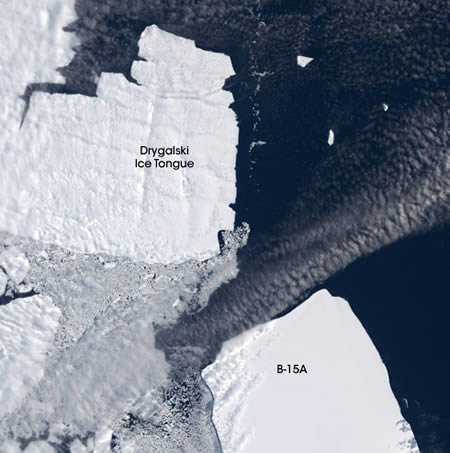 冰川相近運(yùn)動(dòng)圖:本圖攝于2005年1月21日,顯示的是兩大冰塊接近的過程。