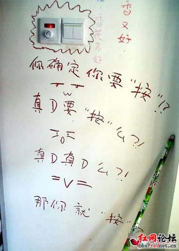 “我十分無語!痹诳戳伺盔f把宿舍惡搞之后,網(wǎng)友“泥巴”不解竟然還有那么多人來叫好!“在放假前夕,把學(xué)校搞成垃圾場一樣,被罰款了不說,校方得重新粉刷墻壁不說,作為大學(xué)生的自身素質(zhì)也該遭受到質(zhì)疑了!”
