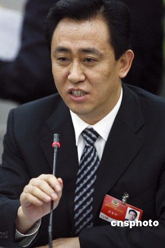 3月4日,全國政協(xié)十一屆二次會議在北京進行分組討論,全國政協(xié)委員、恒大地產主席許家印在分組討論上建議降低房價,讓利于民。中新社發(fā) 盛佳鵬 攝