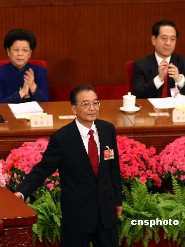 3月5日上午,十一屆全國人大二次會議在北京人民大會堂開幕,國務(wù)院總理溫家寶作《政府工作報告》,代表們多次報以熱烈掌聲。中新社發(fā) 杜洋 攝