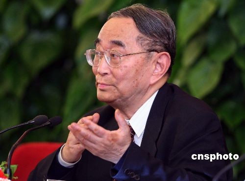 全國政協(xié)常委、著名經(jīng)濟學家厲以寧在3月6日下午舉行的全國政協(xié)十一屆二次會議記者會上說,當前樓價居高不下,原因是地價高。他還回答了關于上調(diào)資源增值稅的說法和提高勞動收入在國民收入中分配比例等問題。中新社發(fā) 宋吉河 攝