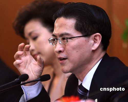 3月8日,全國(guó)政協(xié)十一屆二次會(huì)議記者會(huì)在人民大會(huì)堂新聞發(fā)布廳舉行,主題是“政協(xié)委員談上海世博會(huì)”。萬(wàn)季飛、周漢民、成岳沖、楊瀾等四位委員出席并回答記者提問(wèn)。周漢民回答記者提問(wèn)時(shí)肯定地說(shuō),本屆世博會(huì)一定會(huì)極大地促進(jìn)我們海峽兩岸的經(jīng)貿(mào)和文化往來(lái)。中新社發(fā) 宋吉河 攝