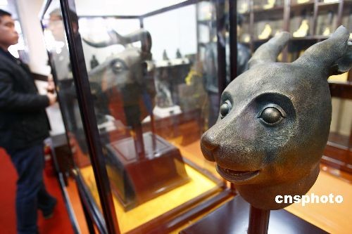 3月9日,第十九屆北京國際禮品工藝品暨家用精品展會(huì)在北京國際貿(mào)易中心開幕。本屆展會(huì)總面積達(dá)15000平方米,共有800多個(gè)展位,匯集了700多家參展商,適合不同人群的需求,讓市民可以體驗(yàn)一站式采購的服務(wù)。圖為“圓明園十二生肖獸首”--卯兔(仿制)亮相禮品展吸引不少市民的目光。中新社發(fā) 鄭雄增 攝