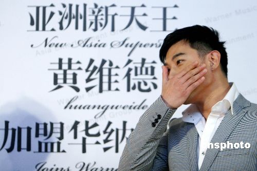 2009年3月9日,臺(tái)灣影視紅星黃維德加盟華納唱片簽約發(fā)布會(huì)在北京隆重舉行。蔡依林恩師陳澤杉送上繡有“金榜題名”的卷軸。事逢前日伊能靜博客突發(fā)感言表明已和庾澄慶離婚,使?fàn)渴珠T(mén)中的主角黃維德再次被推上風(fēng)口浪尖。發(fā)布會(huì)中黃維德感嘆生活多揣,看到依舊堅(jiān)定支持的歌迷突然落淚、抽咽。隨后的媒體訪問(wèn)在問(wèn)題逐漸深入的過(guò)程中黃維德最終難再支撐,匆匆離去。中新社發(fā) 袁方 攝