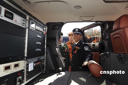 3月10日,西藏自治區(qū)副主席、自治區(qū)公安廳黨委書記、廳長李昭視察拉薩消防特種裝備車輛。當(dāng)日,西藏公安消防部隊(duì)特種裝備車輛服役儀式在拉薩舉行。中新社發(fā) 廖攀 攝