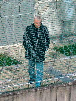 日前,弗萊茨勒在監(jiān)獄里放風(fēng)時的照片被媒體公布,從這組照片中我們看到,弗萊茨勒穿著藍色的牛仔褲和高領(lǐng)的黑色夾克,頭低垂,眼睛盯著地面,手深深地插在上衣口袋里。他在監(jiān)獄的空場上一個人轉(zhuǎn)著圈子踱步,周圍是數(shù)米高帶著鐵絲網(wǎng)的監(jiān)獄圍墻。