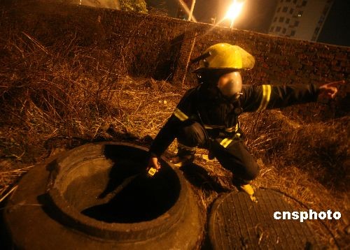 圖為堵漏成功后消防官兵利用消防測爆儀對泄漏點(diǎn)進(jìn)行檢測。中新社發(fā) 袁帆 攝