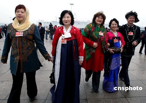 圖:少數(shù)民族委員盛裝步入大會(huì)堂(3)