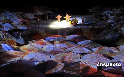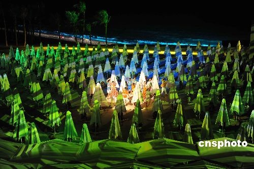 由張藝謀、王潮歌和樊躍“鐵三角導(dǎo)演”共同指導(dǎo)的大型實(shí)景演出——《印象海南島》,于3月16日晚在海南省海口市的印象劇場(chǎng)首次對(duì)外試演!队∠蟆ずD蠉u》試演近一個(gè)月,再經(jīng)過(guò)修改及完善,于4月中旬舉行的博鰲亞洲論壇期間正式公演!队∠蟆ずD蠉u》演出長(zhǎng)70分鐘,印象劇場(chǎng)可容納1600名觀眾,230名男女演員平均年齡19歲,都是在海南島經(jīng)過(guò)嚴(yán)格選拔的。