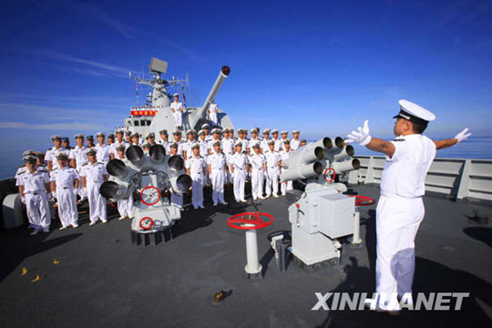 3月24日,“廣州”艦官兵齊聲高唱《歌唱祖國》。